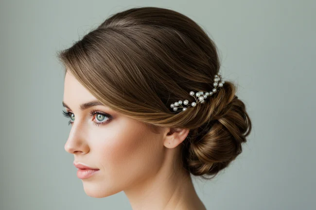 Elegant Wedding Updo Hairstyles Featuring Pearl Hairpins